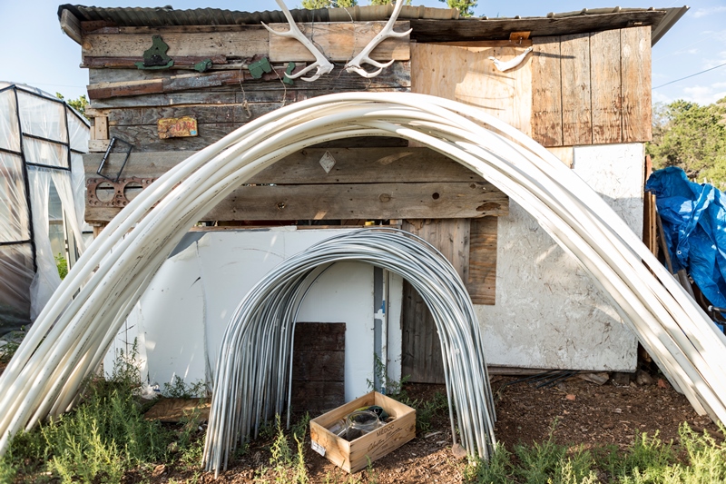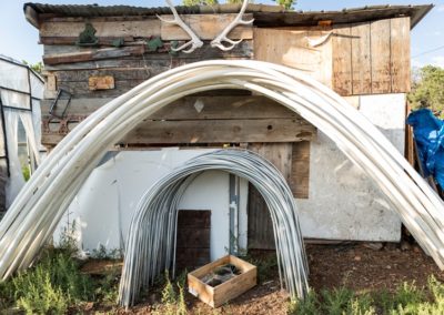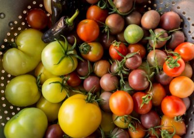 He and his partner, Rebecca, started with a small 30-foot by 10-foot garden. Now they work the land at four different sites in Santa Fe County, from Pecos to La Cienega. Earlier this year, after he co-led an Institute workshop on greenhouses, they were able to build their own greenhouse. The new greenhouse and the different landscapes they cultivate enable Revolution Farm to grow a wide variety of produce. They focus primarily on storage crops, such as garlic and winter squash, but they also grow produce such as salad greens, arugula, tomatoes – a little bit of everything.