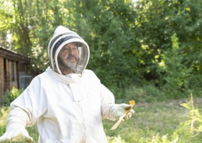 As he tells the story, “I would help him check his hives or collect the honey from different locations. One day we were out collecting some hives and he tells me, ‘let’s go to your house, I’m thirsty.’ Then he tells me. ‘I will leave these bees over here.’ I asked why he was leaving his bees at my house and he says, ‘no, they are your bees.”