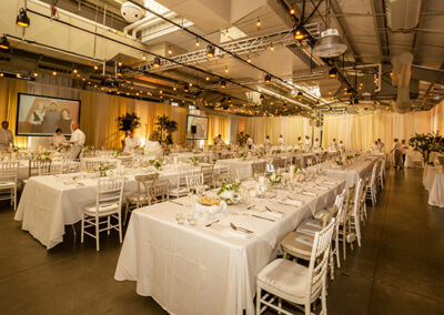 No restrictions on caterers. (Recommendations available upon request) Use of the Market Hall kitchen to prepare food on-site is for licensed caterers only. Separate kitchen usage fees may apply depending on number of guests. Food may also be prepared off-site and brought in and served at the event.
